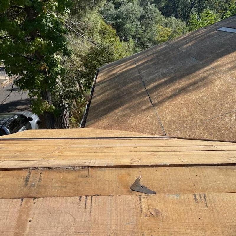 Warren Roofing installed new GAF lifetime asphalt shingles and repaired dry rot on a residential home in Tuolumne, California. The project improved roof structure by replacing damaged materials and applying durable roofing.